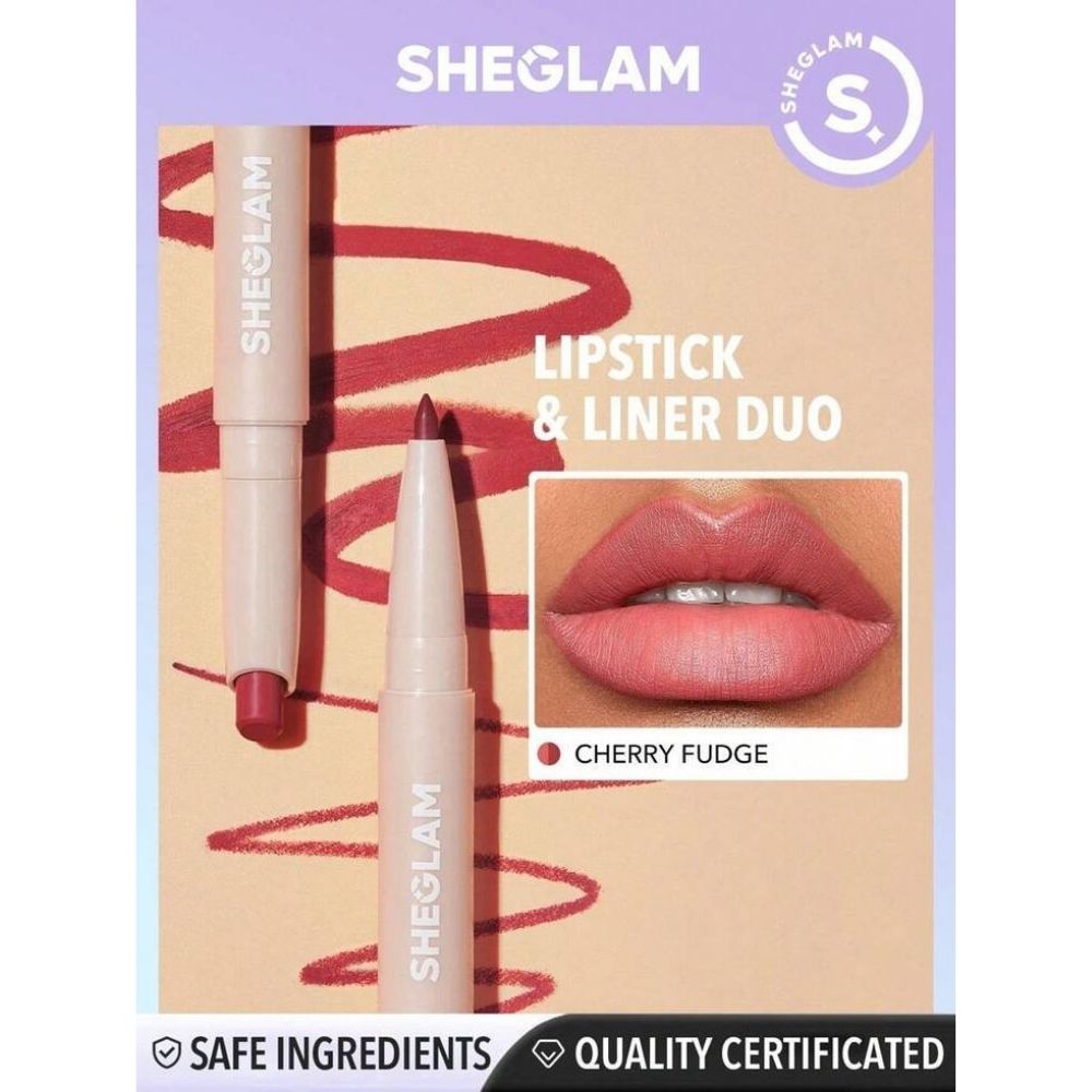 أحمر شفاه شيغلام جلام 101 ثنائي أحمر الشفاه وقلم التحديد - شيري فادج، مجموعة شفاه متناسقة، تتميز بقلم تحديد غني الصبغة وأحمر شفاه متناسق، يوفران معًا تغطية كاملة ودقة عالية ولمسة نهائية مخملية ناعمة. تركيبته الكريمية غنية بمكونات مرطبة للحفاظ على نعومة الشفاه وراحتها مع ضمان ثبات يدوم طويلًا. يمنحك شيري فادج مظهرًا جريئًا وأنيقًا، يُحدد الشفاه ويُبرز جمالها بلمسة نهائية احترافية وعالية التأثير.