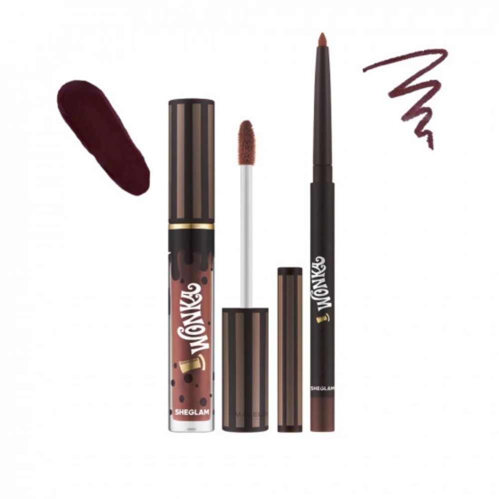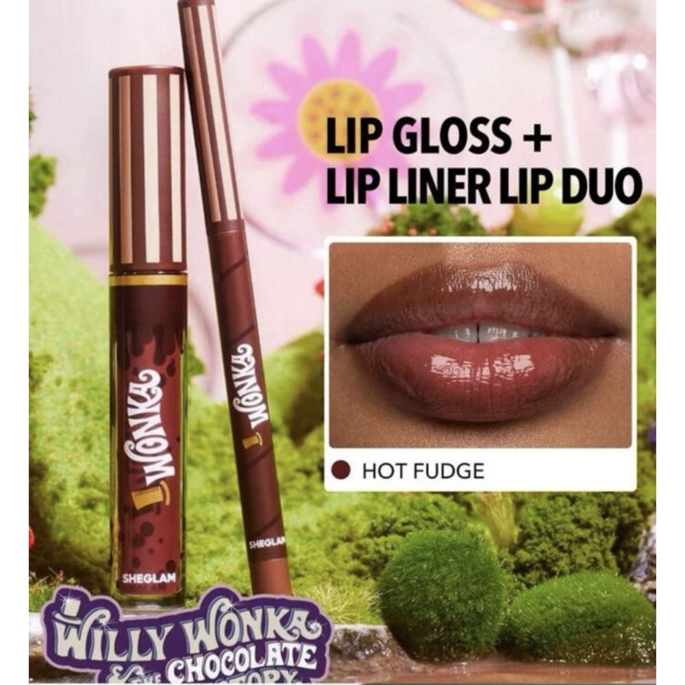 Sheglam Willy Wonka Cocoa Kiss Lip Duo – Hot Fudge is a decadent, dual-ended lip product featuring a rich, chocolatey shade paired with a complementary gloss for an indulgent, full-coverage finish. The pigmented lipstick glides smoothly, providing long-lasting color, while the hydrating gloss adds shine and softness. Infused with nourishing ingredients, this duo ensures lips stay moisturized, plump, and vibrant, creating a luxurious, playful, and eye-catching lip look.