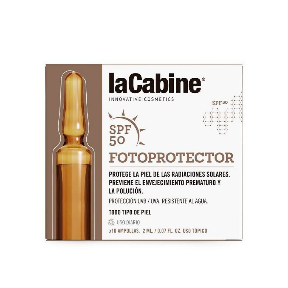 laCabine Fotoprotector SPF50 Ampoules provide high-performance sun protection in a concentrated, easy-to-use format. Enriched with broad-spectrum UV filters, antioxidants, and hydrating agents, they shield the skin from harmful UVA and UVB rays while preventing photoaging and oxidative stress. The lightweight, non-greasy formula absorbs quickly, leaving skin comfortable, hydrated, and luminous. Perfect for daily use or travel, these ampoules ensure maximum sun defense while enhancing skin radiance and maintaining overall skin health.