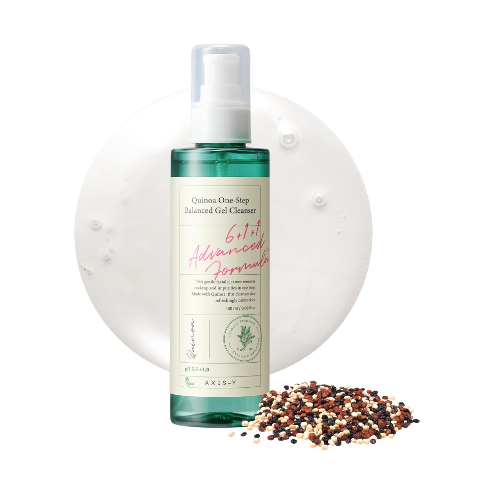 Axis-Y Quinoa One-Step Balanced Gel Cleanser (180ml) is a gentle yet effective facial cleanser formulated with quinoa extract to remove impurities, makeup, and excess oil while preserving the skin’s natural moisture barrier. The amino acid-rich quinoa works alongside centella asiatica and green tea to calm and protect the skin from environmental stress. This gel-based formula creates a soft lather that purifies without stripping, leaving the skin feeling refreshed, balanced, and hydrated. Ideal for daily use, it promotes a clean, smooth, and radiant complexion with every wash.