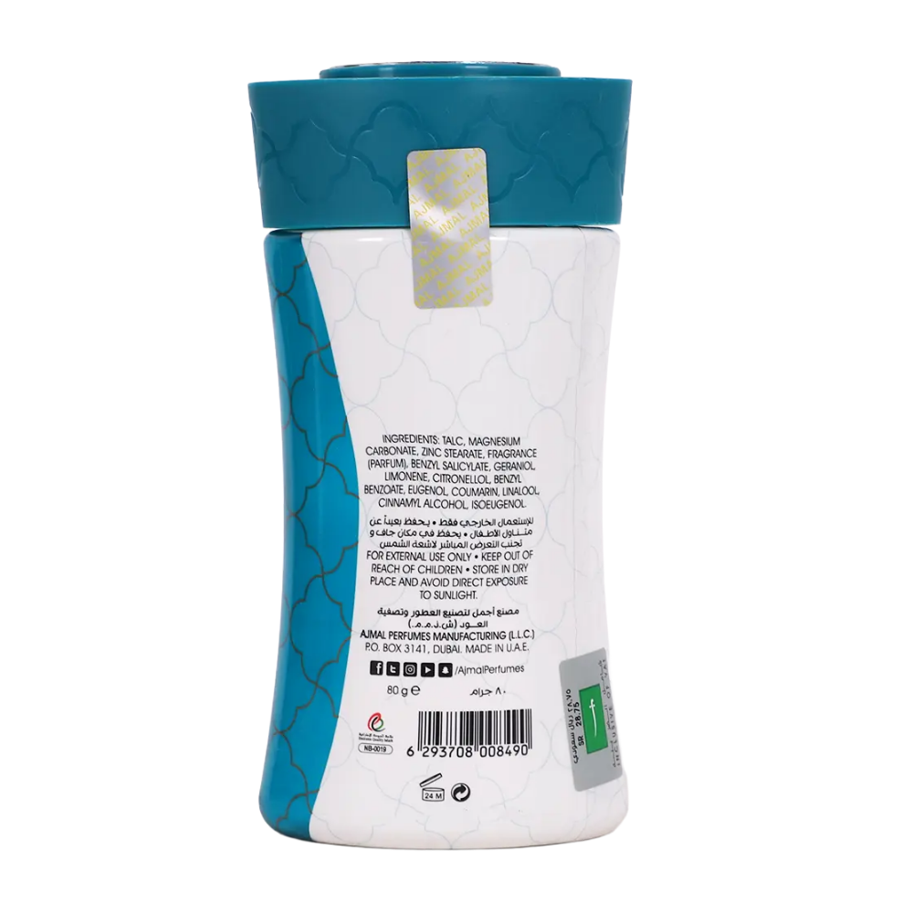 Ajmal Danat Al Donia Perfumed Body Powder - 80 g Ajmal Danat Al Donia Perfumed Body Powder - 80 g is a luxurious perfumed powder that brings the treasures of the world to your skin. It opens with warm floral and fruity top notes, flows into a rich heart of rose, jasmine, and creamy musk, then rests on a soft, opulent base of sandalwood, amber, and sensual musk. This elegant 80g body powder provides excellent moisture control and long-lasting fragrance, leaving skin feeling silky, dry, and delicately scented with a sophisticated, worldly charm.