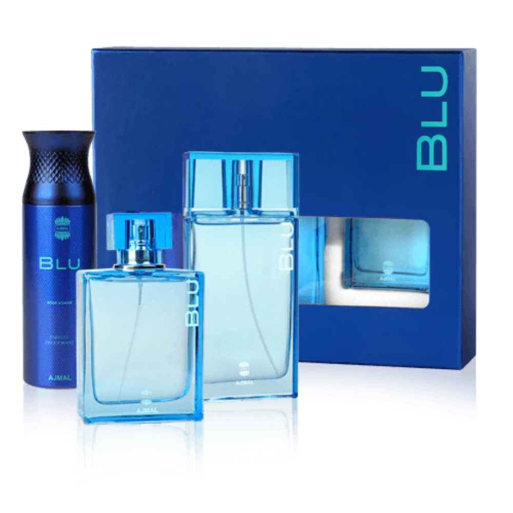 Ajmal Blu Gift Set - Men Ajmal Blu Gift Set - Men is a complete masculine grooming collection that brings together the fresh and sophisticated character of the Blu fragrance. The set features crisp citrus and marine top notes, a clean heart of lavender, geranium, and woody accords, and a strong base of patchouli, oakmoss, and amber. Designed for the modern gentleman, this gift set offers refreshing performance with long-lasting freshness, making it an ideal choice for daily confidence or as a thoughtful present for any man who appreciates clean, elegant, and timeless scents.