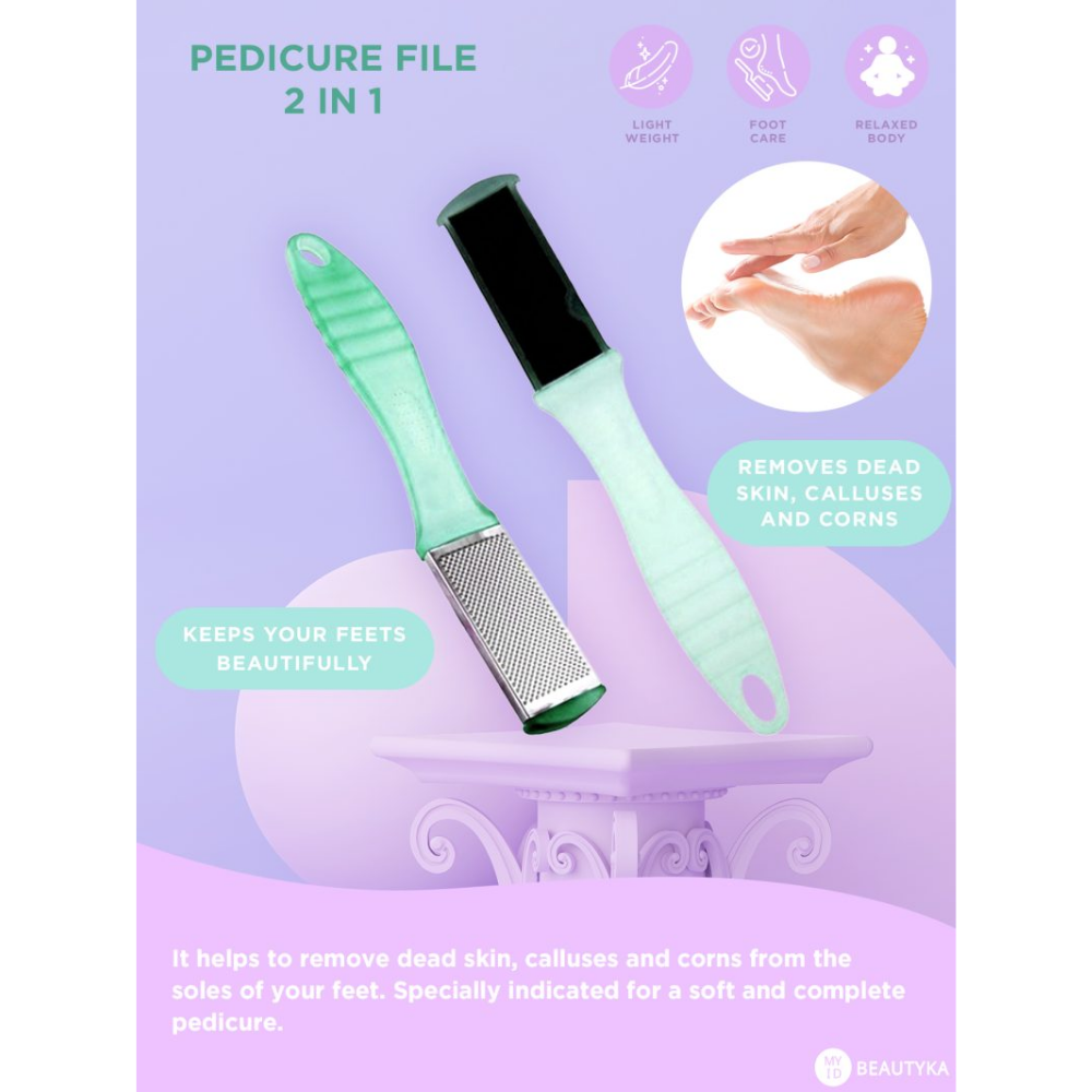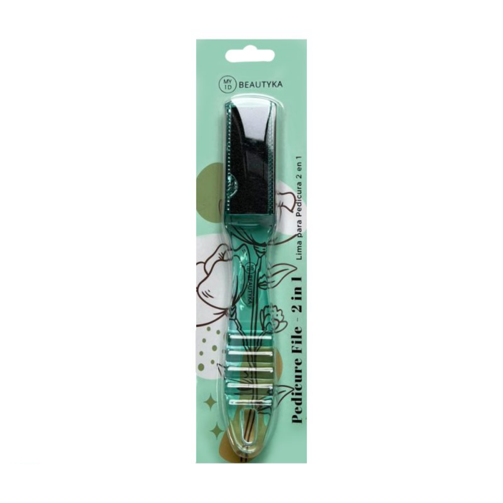 My Beautika Pedicure File 2-in-1 is a dual-function foot care tool combining two different filing surfaces in a single ergonomic instrument to deliver comprehensive at-home pedicure results from callus removal to final smoothing in one convenient session. The coarser filing surface is engineered to efficiently reduce thick calluses, rough heel patches, and stubborn hard skin buildup that accumulates from daily friction and pressure, while the finer surface buffs and polishes the treated area to a soft, even finish that feels smooth and comfortable against socks, shoes, and bedsheets. The thoughtfully designed handle provides a secure, comfortable grip with enough length and leverage to reach all areas of the foot including the heel edges, ball of the foot, and sides of the toes where hard skin commonly develops. This space-saving two-in-one design eliminates the need for multiple pedicure tools, streamlining foot care routines while delivering professional-quality results that keep feet looking and feeling their best.