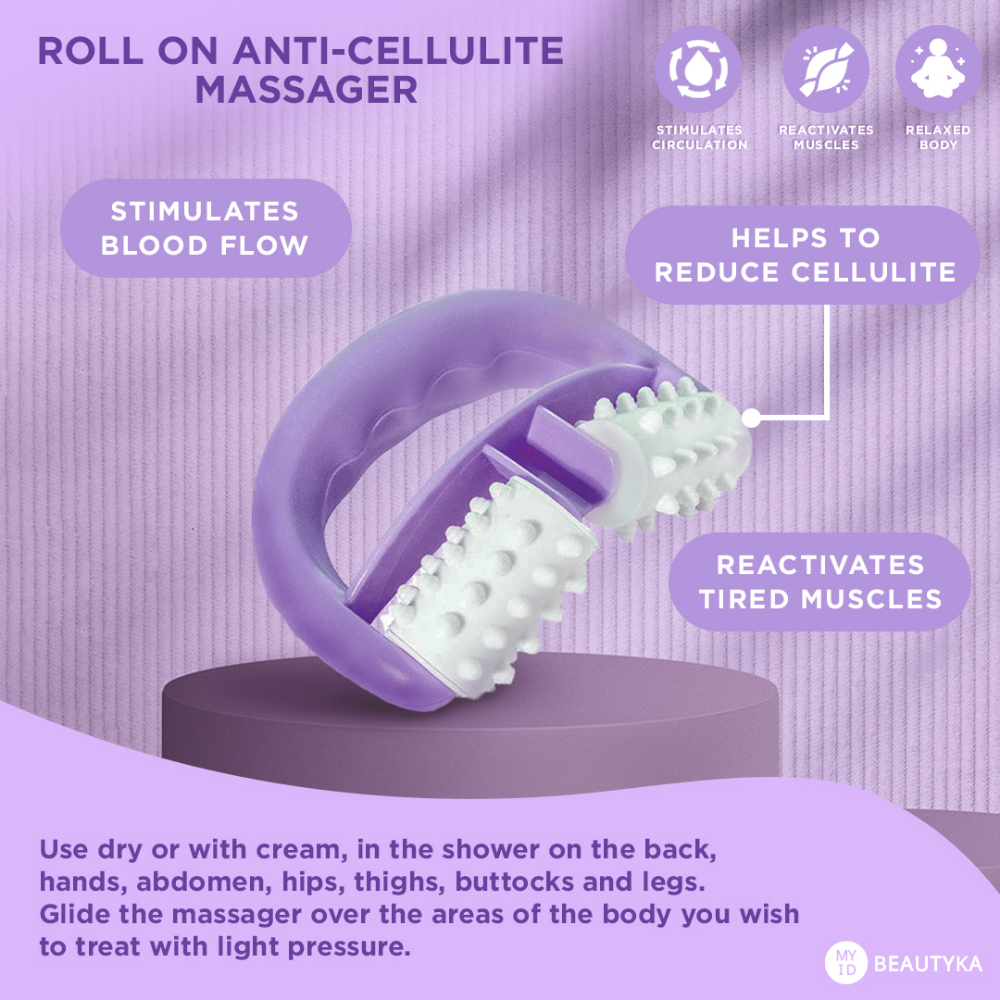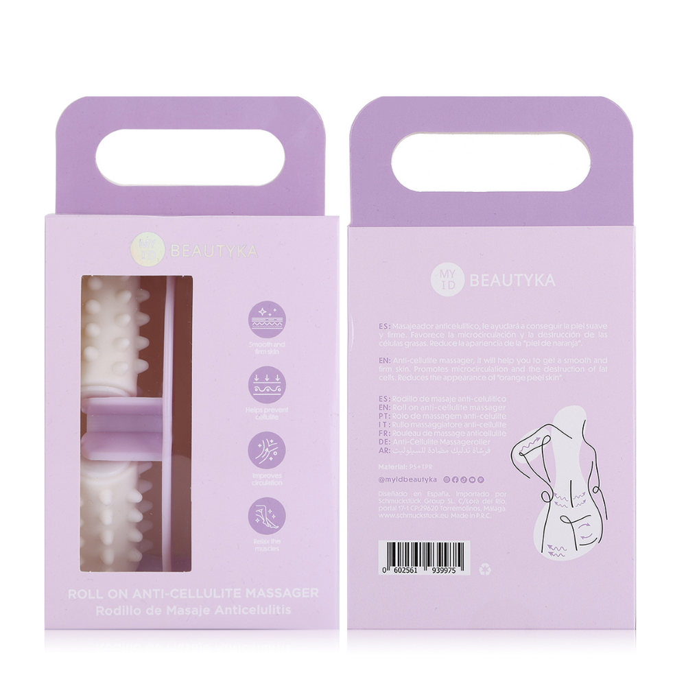 My Beautika Anti Cellulite Roll-On Massager is a handheld body massage tool designed with rolling mechanisms that knead, stimulate, and massage cellulite-prone areas to boost microcirculation, encourage lymphatic drainage, and improve the dimpled, uneven skin texture associated with cellulite. The rolling action mimics professional massage techniques by applying consistent, targeted pressure that breaks up fluid retention, increases blood flow to stagnant tissue, and promotes the natural drainage of toxins and excess fluids that contribute to the puffy, lumpy appearance of cellulite on the thighs, hips, buttocks, and abdomen. The ergonomic handle design allows for comfortable, extended massage sessions with controlled pressure that can be adjusted based on personal tolerance and the sensitivity of different body areas. Regular use of this roll-on massager alongside anti-cellulite creams and active lifestyles helps enhance product absorption, accelerate visible smoothing results, and maintain firmer, more toned-looking skin over time.