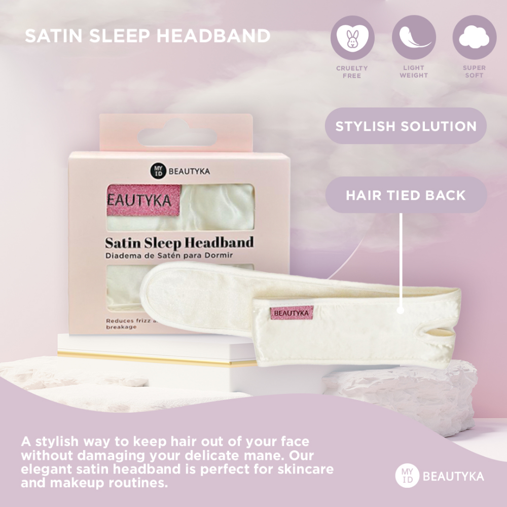 My Beautika Satin Sleep Headband is a luxuriously smooth satin headband designed to be worn during sleep to keep hair neatly swept back from the face while protecting both the hairline and facial skin from friction, product transfer, and nighttime disruption. The satin fabric creates a virtually frictionless surface that prevents the tugging, pulling, and breakage that cotton and terry cloth headbands cause on delicate hairline strands, baby hairs, and fragile edges that are particularly vulnerable to traction damage during tossing and turning throughout the night. Simultaneously, the headband keeps hair products, oils, and serums from migrating onto the forehead and pillow, reducing the clogged pores, forehead breakouts, and pillowcase staining that commonly result from nighttime skincare and haircare routines. The gentle elastic construction provides a secure yet pressure-free fit that stays in place throughout the night without causing headaches, ear discomfort, or indentation marks on the forehead.