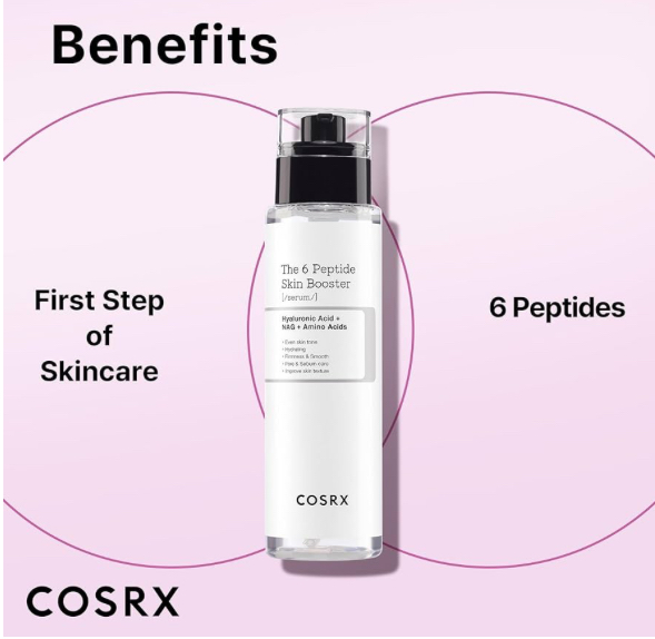 يحتوي مُعزز البشرة بستة ببتيدات على ستة ببتيدات متعددة تُحسّن حالة البشرة بشكل عام، مثل المسام والدهون، وشد البشرة، والخطوط الدقيقة، وملمسها، ولونها، وترطيبها. وهو مثالي للاستخدام كخطوة أولى في روتين العناية بالبشرة لتحضيرها وتعزيزها.