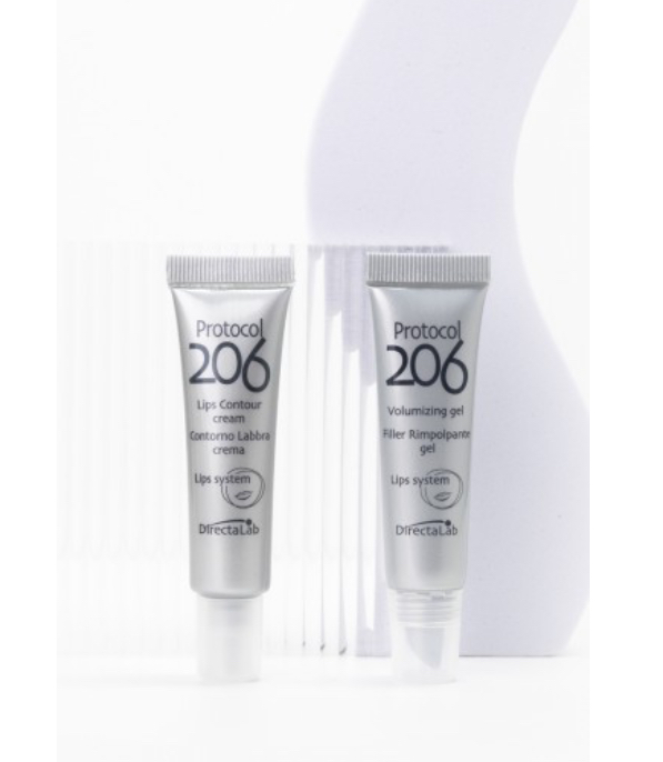 يتكون بروتوكول 206 ليبس سيستم من منتجين يعملان بشكل تآزري لعلاج ومنع علامات الشيخوخة في محيط الشفاه.