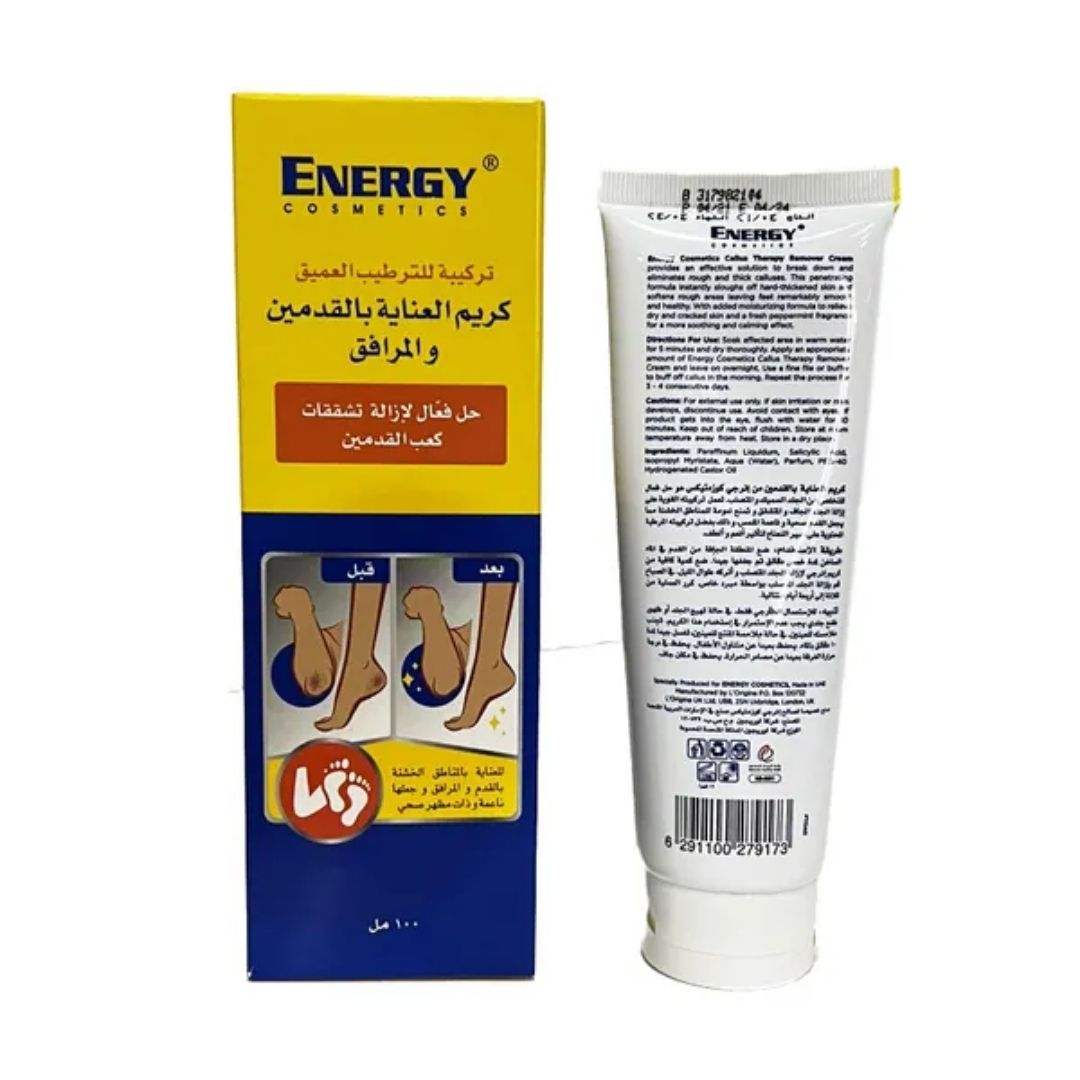 كريم إنرجي كالس إس جيه ١٠٠ مل هو كريم غني ومكثف للعناية بالقدمين، مصمم لتنعيم وإصلاح البشرة المتيبسة والخشنة. تحتوي تركيبته على اليوريا وزبدة الشيا وفيتامين هـ، التي ترطب البشرة بعمق وتقشرها وتعيد مرونتها. يساعد الاستخدام المنتظم على منع التشققات، ويخفف الانزعاج، ويترك القدمين ناعمة ومرنة ومغذية، مما يعزز صحة البشرة وراحتها بشكل عام.