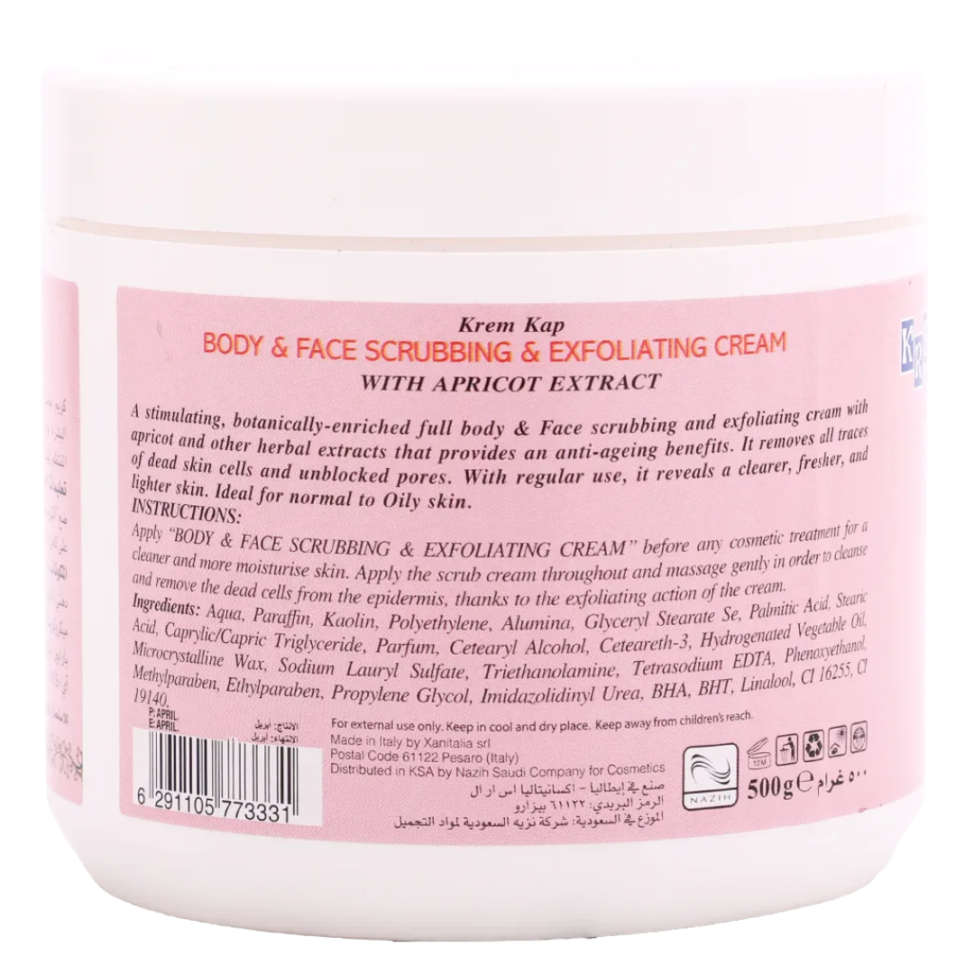 كريم كاب مقشر الوجه والجسم بالمشمش ٥٠٠ مل، مقشر فاخر غني بمستخلص المشمش، والصبار، وفيتامين هـ، مصمم لتنظيف البشرة وتجديدها وتنشيطها. تركيبته اللطيفة والفعالة تزيل الشوائب، وتنعم البشرة الخشنة، وتعزز إشراقتها الطبيعية، تاركةً البشرة ناعمة ومشرقة ومنتعشة. مثالي لجميع أنواع البشرة، ويدعم صحة البشرة ونضارتها وإشراقتها بشكل ملحوظ.