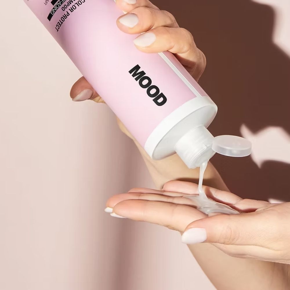 Mood Color Protect Shampoo 1000ml is a salon-size shampoo designed to protect and maintain the vibrancy of color-treated hair. With UV filters, keratin, and argan oil, it defends against fading, hydrates the hair fiber, and enhances shine. Its nourishing formula gently cleanses without stripping color, leaving hair soft, silky, and radiant, while ensuring long-lasting brilliance and protection against environmental stressors.