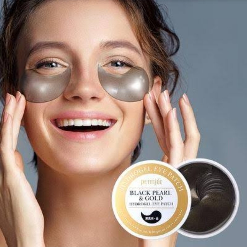 Petitfee Black Pearl & Gold Hydrogel Eye Patches 60 Patches combine the nourishing power of black pearl extract with the illuminating benefits of 24K gold to target under-eye concerns. These hydrogel patches hydrate, firm, and brighten the delicate eye area, reducing puffiness and signs of fatigue while promoting a smooth, revitalized, and radiant appearance for a well-rested look.