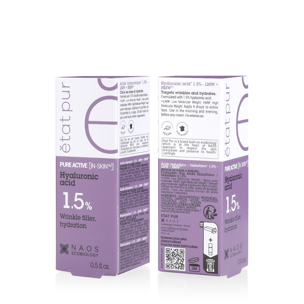 Etat Pur Hyaluronic Acid Serum – 15ml is a deeply hydrating and plumping serum formulated with pure hyaluronic acid, a powerful humectant that attracts and retains moisture within the skin. This serum helps restore hydration levels, smooth fine lines, and improve elasticity, leaving the skin soft, supple, and radiant. Enhanced with glycerin and soothing botanical extracts, it penetrates quickly and efficiently, providing long-lasting hydration without heaviness. The lightweight, biomimetic texture ensures optimal delivery of actives, resulting in a visibly smoother, more luminous complexion with a refreshed, youthful appearance.