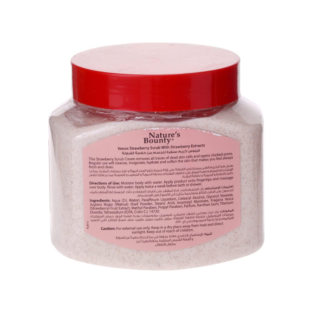 Nature's Bounty Venos Face & Body Scrub Strawberry (300ml) is a revitalizing scrub infused with natural strawberry extracts, crushed walnut shells, and kaolin clay to exfoliate, purify, and rejuvenate the skin. Rich in antioxidants and vitamins, strawberry extract helps fight free radicals, brighten the complexion, and improve skin texture, while natural oils and vitamin E nourish and hydrate. This scrub effectively removes dead skin cells, unclogs pores, and promotes circulation, leaving the skin soft, smooth, luminous, and refreshed, with a delightful fruity aroma that invigorates the senses.