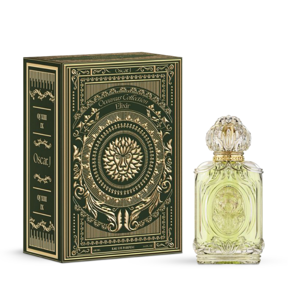 Oscar.J Oceanus – Elixer (100 ml) combines aquatic sophistication with warm depth, beginning with top notes of icy lemon, fresh sea mist, and vibrant mandarin that deliver an uplifting and sparkling opening reminiscent of cool waves meeting warm sunlight; the heart of Oceanus – Elixer brings together lotus blossom, airy neroli, and hints of soft coastal herbs, adding an elegant floral-aquatic fluidity that feels smooth, refined, and full of quiet charm; finally, the base blends creamy sandalwood, amber resin, and clean white musk to create a warm, comforting, and sensual finish that balances freshness with gentle richness, making this fragrance ideal for those who enjoy a sophisticated yet easy-to-wear aquatic scent that feels both refreshing and comforting.