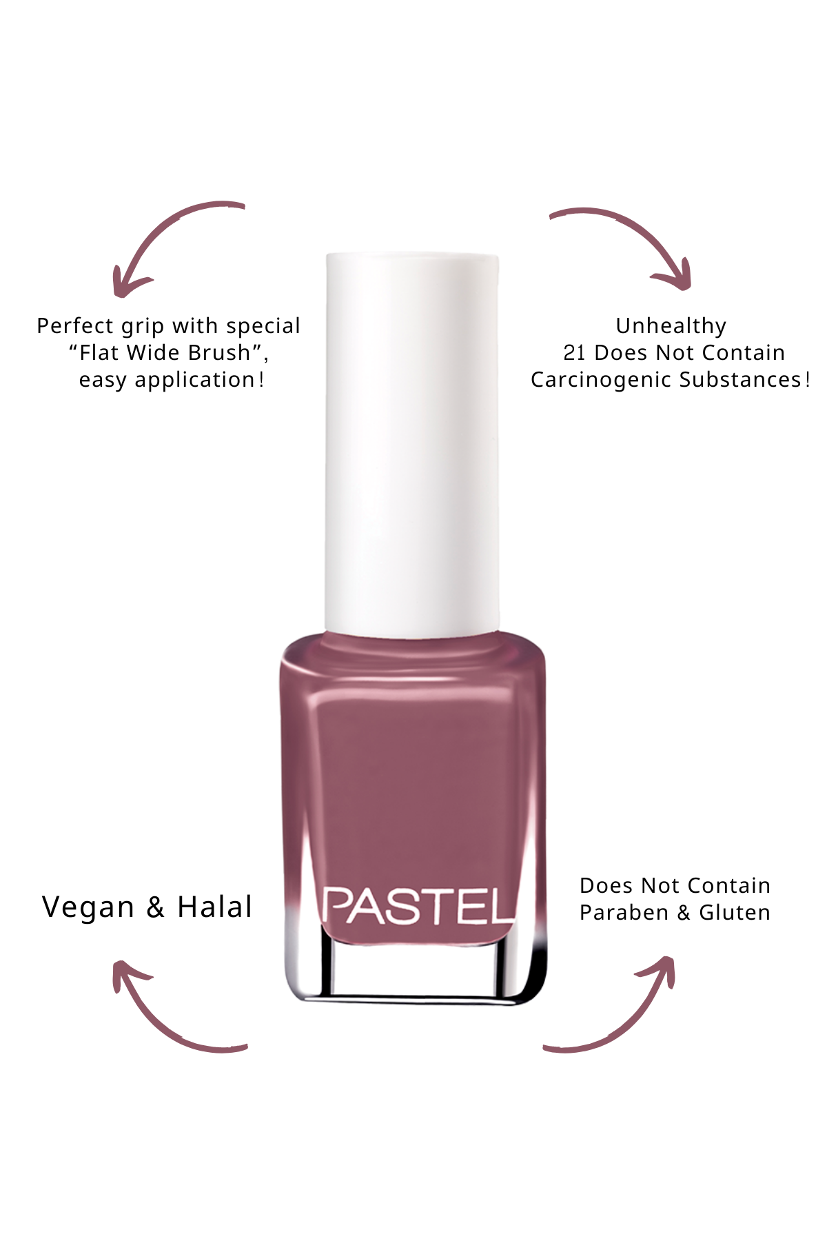 Smooth application. It dries quickly. Long-lasting. In short, give your nails the perfect touch of color with our pastel nail polish. With its trendy colors, each more attractive than the other, intense texture with high coverage, and made with high-quality ingredients, our nail polish gives you beautiful nails for every occasion. Find out more Pastel nail polish with its high pigmentation gives you full coverage of intense color on your nails with just one sweep. It is made from high-quality ingredients and has a soft texture that makes it easy to apply. Coatings are available