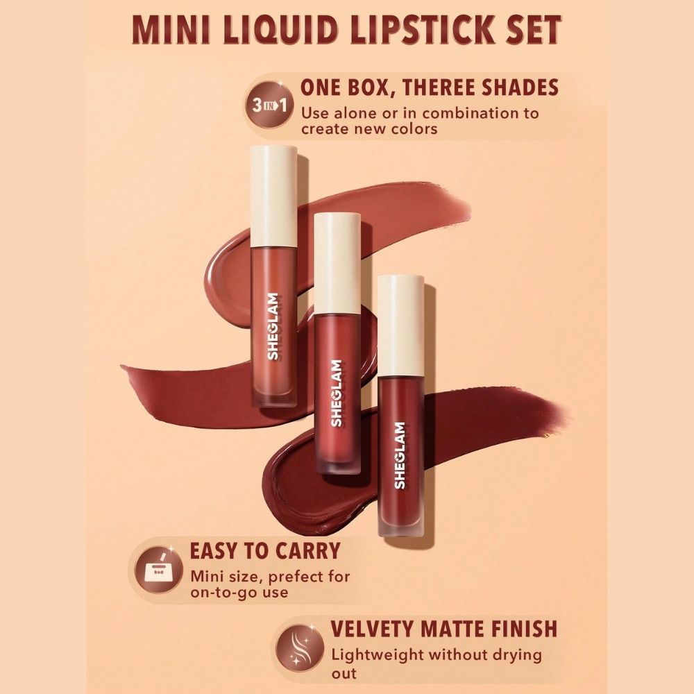 Sheglam Matte Allure Mini Liquid Lipstick Set – Private Tour offers a range of compact, high-pigment liquid lipsticks with a comfortable matte finish. The lightweight, creamy formulas glide effortlessly, providing buildable coverage that stays flawless throughout the day. Enriched with hydrating and conditioning ingredients, the set ensures lips remain soft, smooth, and vibrant, allowing for professional, polished looks whether used individually or combined for customized lip styling.