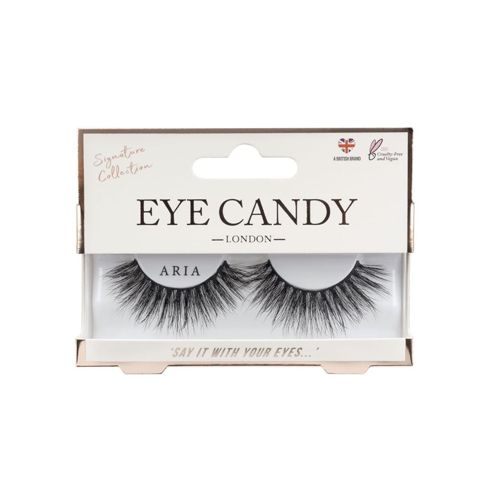 Eye Candy Lashes Aria are bold, glamorous lashes designed to add captivating drama and intensity to your eyes. Crafted from high-quality, cruelty-free synthetic fibers, they are soft to the touch yet durable enough for multiple uses. The Aria style combines length and volume in a layered design that enhances the lash line, making it ideal for special occasions or bold evening looks. Their lightweight band ensures comfortable wear, and their luxurious appearance instantly transforms your makeup into a striking, high-impact statement.