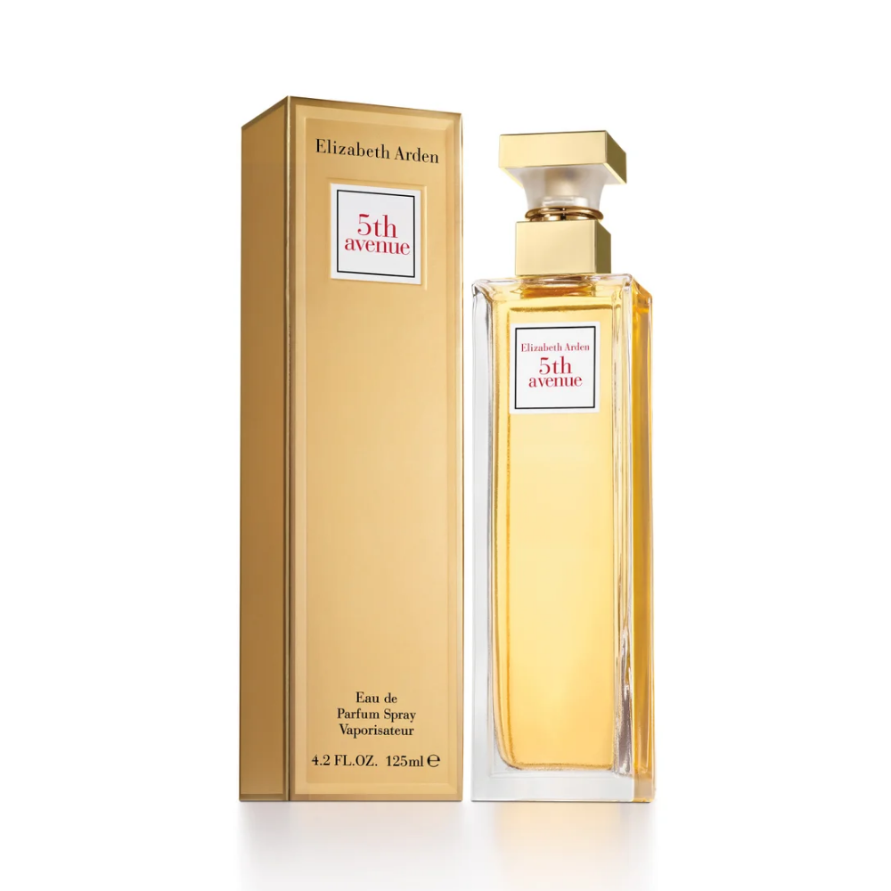Elizabeth Arden 5th Avenue Women EDP 125 ml Spray: Elizabeth Arden 5th Avenue Women Eau De Parfum is a sophisticated floral fragrance featuring top notes of lilac, linden blossom, and magnolia, heart notes of rose, lily-of-the-valley, and clove, and base notes of sandalwood, musk, and amber. This luxurious perfume exudes elegance, refinement, and timeless femininity, perfect for both day and evening wear. Its long-lasting formula ensures a lingering, captivating scent that embodies confidence, grace, and sophistication, making it an iconic fragrance for women who appreciate classic charm and urban sophistication.