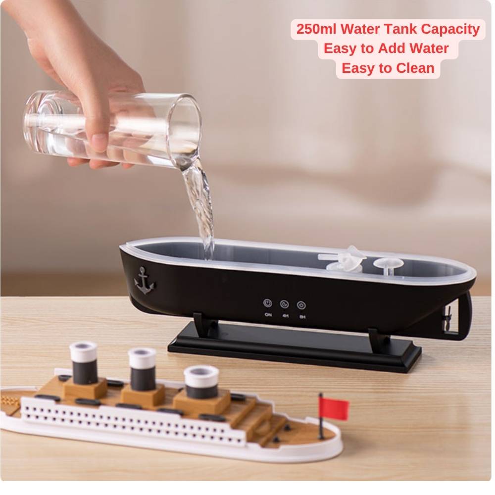 حوّل مساحتك مع موزع العطور بشكل سفينة تايتانيك، الذي يجمع بين التصميم الكلاسيكي والوظائف الحديثة، مستوحى من أناقة سفينة التايتانيك