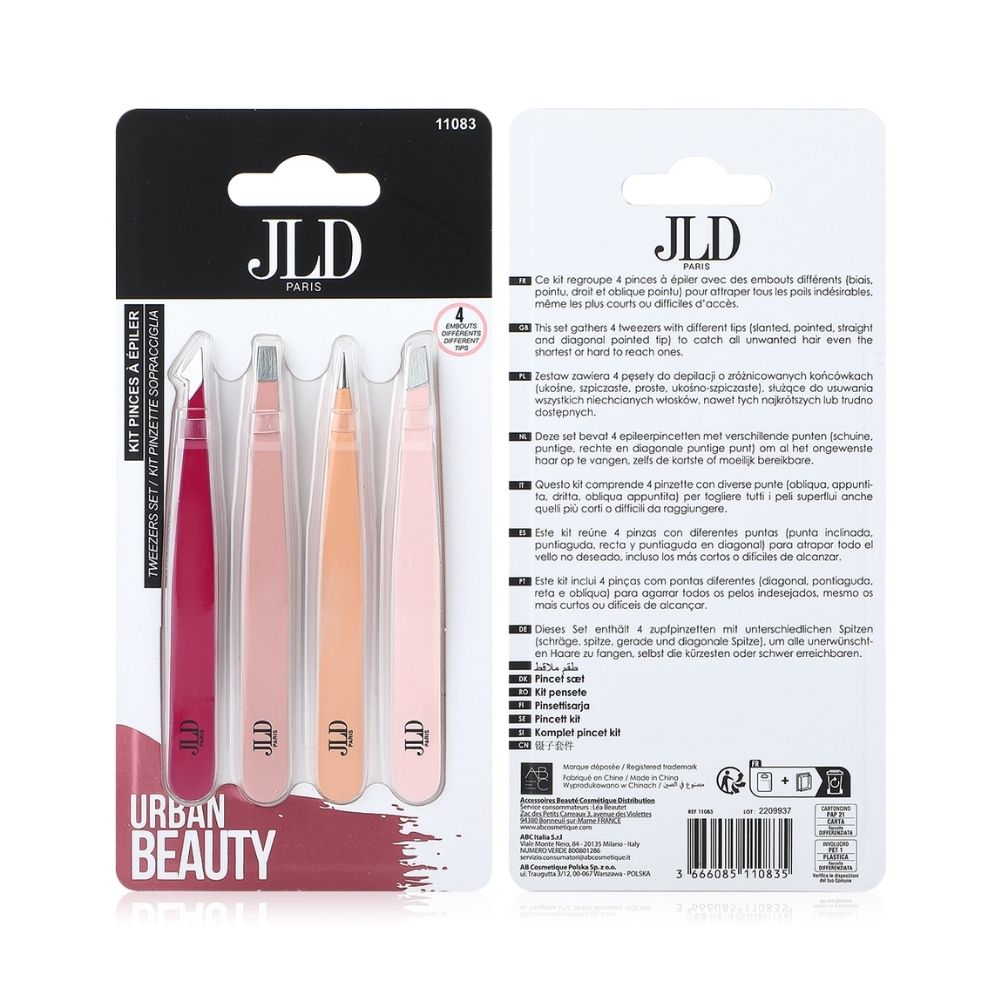 طقم ملاقط JLD 11083، 4 قطع، هو مجموعة متعددة الاستخدامات من الملاقط الدقيقة المصممة للعناية الشخصية الدقيقة. مصنوع من الفولاذ المقاوم للصدأ عالي الجودة، ويتضمن ملاقط مائلة، ومدببة، ومسطحة، ومائلة الرأس، للتعامل مع جميع المهام، من تحديد الحواجب إلى إزالة الشظايا. يتميز كل ملقط بلمسة نهائية مصقولة لسهولة التنظيف وقبضة محكمة، مما يضمن استخدامًا دقيقًا ومتحكمًا، بينما توفر الحقيبة الصغيرة سهولة التخزين والحمل.