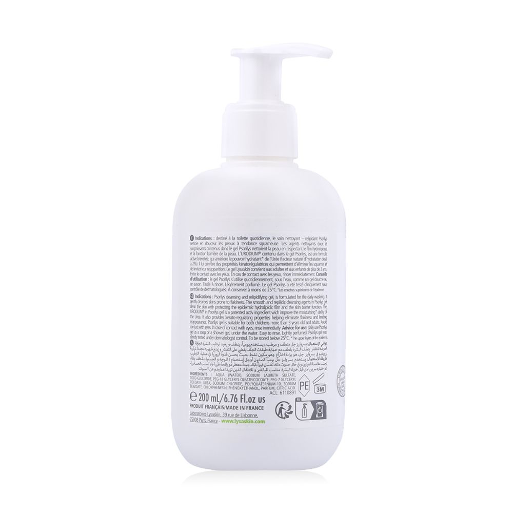 ليساسكين بسوريلي جل نت 200 مل هو جل منظف لطيف، مُصمم خصيصًا للبشرة المعرضة للصدفية، والتقشر، والبقع السميكة. يحتوي على 10% من اليوريا، المعروفة بخصائصها المُقشرة والمرطبة، مما يُساعد على تفتيت الكيراتين الزائد وترطيب البشرة بعمق. غني بحمض اللاكتيك، يُعزز التقشير اللطيف لإزالة خلايا الجلد الميتة، بينما يضمن الجلسرين احتفاظًا طويل الأمد بالرطوبة. يُهدئ الألانتوين التهيج، وقاعدته الخالية من الصابون، والمُزودة بمواد خافضة للتوتر السطحي، تُنظف البشرة دون أن تُزيل حاجزها الواقي الطبيعي، مما يجعلها ناعمة وملساء وأكثر راحة.