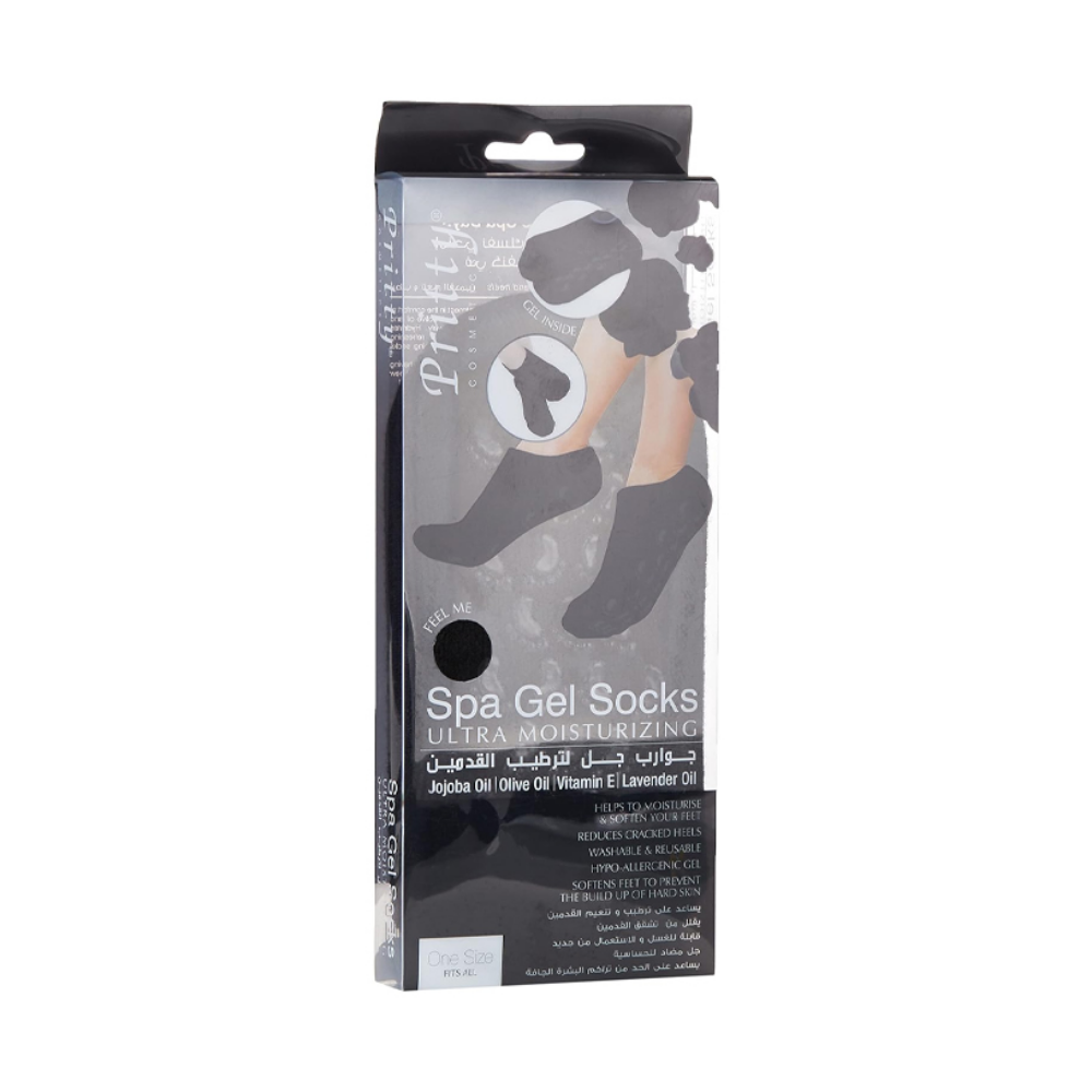 جوارب بريتي سبا جل السوداء هي جوارب مرطبة غنية بالجل، مصممة لترطيب وتنعيم الأقدام الجافة والخشنة. حشوها الداخلي المبطن بالجل، والمسامي، يحبس الرطوبة، ويترك القدمين مصقولتين وناعمتين ومتجددتين بعد كل جلسة، مثالية للعناية بالأقدام في المنزل أو في الصالون.