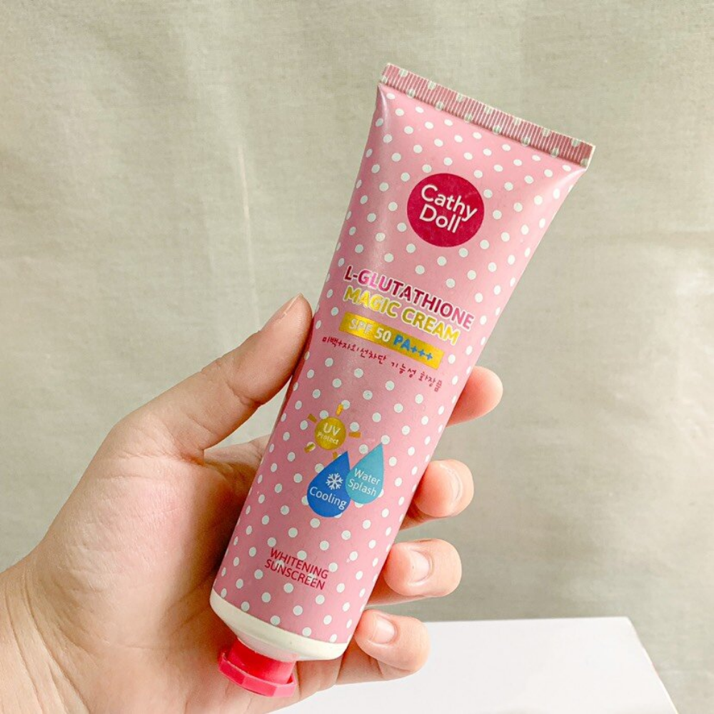 كريم كاثي دول إل-جلوتاثيون ماجيك بعامل حماية من الشمس 50 (138 مل) هو كريم متكامل لتفتيح البشرة وترطيبها وحمايتها من الشمس، مصمم ليمنحها مظهرًا مشرقًا وخاليًا من العيوب. غني بالجلوتاثيون لتقليل البقع الداكنة وتوحيد لون البشرة، والنياسيناميد لتفتيح البشرة، وحمض الهيالورونيك لترطيب يدوم طويلًا، كما يحتوي على عامل حماية واسع الطيف SPF50 لحماية البشرة من أشعة الشمس فوق البنفسجية الطويلة والمتوسطة الضارة. غني بمستخلصات نباتية مثل الصبار والشاي الأخضر والبابونج، يغذي هذا الكريم البشرة ويهدئها ويحميها من العوامل البيئية الضارة، مع تحسين مرونتها وملمسها. تركيبته خفيفة الوزن وسريعة الامتصاص تترك البشرة ناعمة ومشرقة وناعمة كالحرير. المكونات الرئيسية تشمل L-Glutathione، Niacinamide، Hyaluronate الصوديوم، مستخلص أوراق الصبار، مستخلص أوراق الكاميليا الصينية، مستخلص زهرة البابونج، ثاني أكسيد التيتانيوم، أكسيد الزنك، والجلسرين.