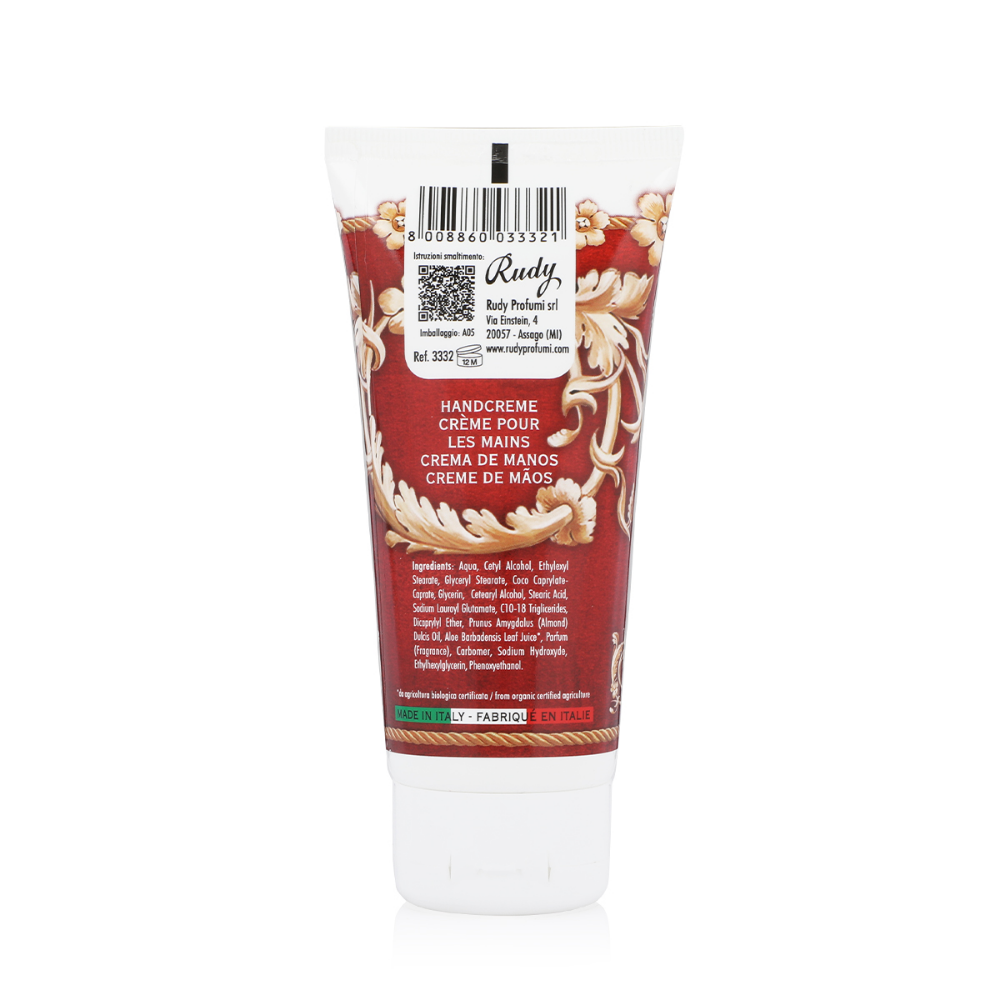 كريم رودي روما لليدين ١٠٠ مل يُغذي ويحمي اليدين بزبدة الشيا وزيت اللوز وفيتامين هـ وزيت الزيتون، مما يُوفر ترطيبًا عميقًا ويعيد نعومته ومرونته للبشرة الجافة أو الحساسة. قوامه سريع الامتصاص دون ترك أي أثر، بينما يجمع عطره بين نفحات الحمضيات والزهور والخشب، ليمنح اليدين رائحة عطرية رقيقة وعناية فاخرة.