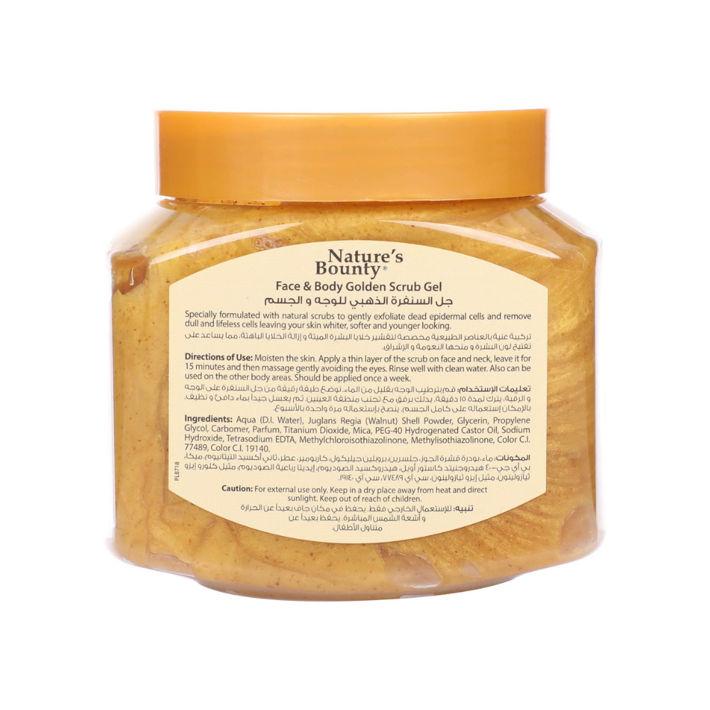 مقشر الوجه والجسم الذهبي من ناتشرز باونتي فينوس (300 مل) هو علاج تقشير فاخر مُصمم بتركيبة غنية بجزيئات الذهب الحقيقي والطين الطبيعي ومستخلصات نباتية مغذية لتنظيف البشرة بعمق وتلميعها وتجديدها. تساعد جزيئات الذهب على تحفيز الدورة الدموية الدقيقة وتعزيز إشراقة البشرة، بينما يعمل طين الكاولين والبنتونيت على سحب الشوائب والسموم والزيوت الزائدة من الوجه والجسم. غني بالألوفيرا وزبدة الشيا وفيتامين هـ، يوفر هذا المقشر ترطيبًا مكثفًا، ويهدئ التهيج، ويحسن مرونة البشرة. الاستخدام المنتظم يُعزز الحصول على بشرة ناعمة كالحرير ومشرقة بنضارة صحية، مما يجعله مثاليًا لتجديد البشرة الباهتة والمتعبة، ويمنحك تجربة فاخرة تُشبه تجربة المنتجعات الصحية في المنزل.
